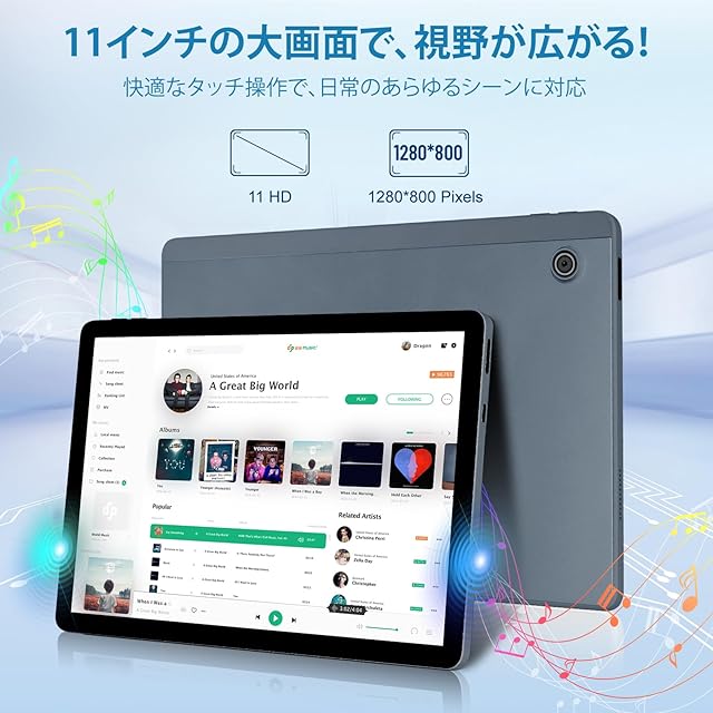 【10.95インチタブレット・IPS液晶・Widevine L1対応・無線投影】11インチ タブレットは、1280×800の解像度を持つIPS大画面を搭載しています。色が鮮やかで、視野角も広いため、映画やゲーム、日常的な作業など、さまざまなシーンでクリアで生き生きとした映像が楽しめます。また、Widevine L1認証に対応しているため、ストリーミングサービスでの高画質コンテンツもスムーズに再生可能です。家庭でのエンターテインメントや学習、仕事にぴったりのアイテムです。外出時には、電子書籍の読書やSNSの閲覧、ビジネスプレゼンテーション、インスピレーションの記録など、最高のパートナーとなります。さらに、液晶画面とブルーライトカット機能を搭載しており、目の負担を軽減します。ワイヤレス投影機能により、テレビやプロジェクターへの画面ミラーリングが簡単に行えます。