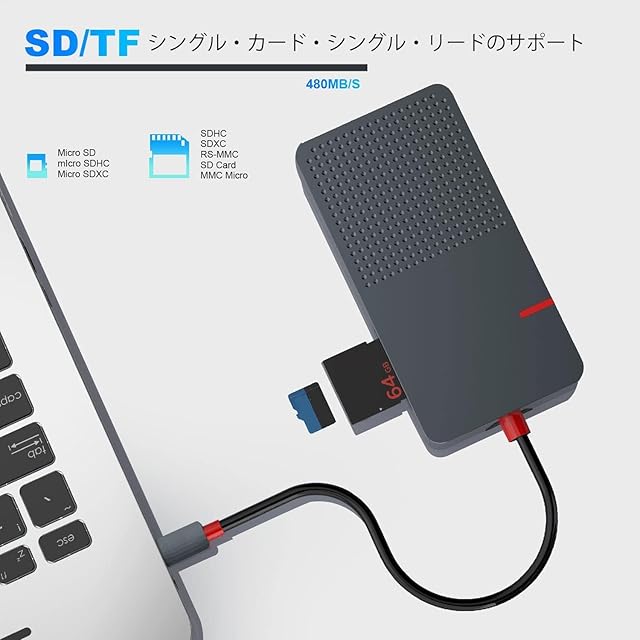 高速データハブ:usb cマルチポートアダプタには、追加の電源を接続し、ノートパソコンの充電(最大85 W)をサポートするc型充電ポートが付いています。USB 3.0*3ポート、伝送速度5 Gb/s、データ伝送速度が速い、ワイヤレスマウスとキーボードとの接続性を向上させることができます。内蔵SDとTFスロットにより、汎用SDとMicro SDメモリカードからファイルにアクセスできます。注意:2枚のカードの同時読み取りはサポートされていませんが、SD、SDHC、Micro SD、MMC、SDXCなどの異なるメモリカードフォーマットをサポートしています。