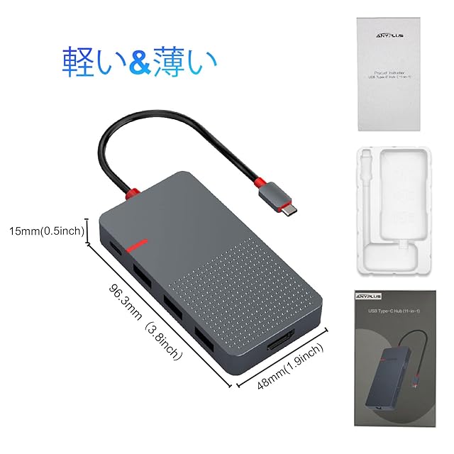 100 W PD充電ポートと広範な互換性:ANYPLUS usb cアダプタハブにより、複数の周辺機器を接続しながらノートパソコンの電力を100 Wまで充電でき、電力消費を心配する必要はありません。アルミニウム合金材料は放熱を確保するために使用され、体積が小さく、携帯に便利である。Steam Deck、Switch、Xbox、PS 5、MacBook、Dell XPS、Surface/Lenovo/HPノートパソコンなどに広く応用できる。