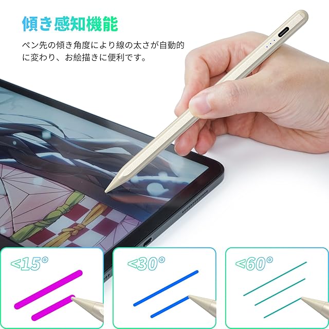 【磁気吸着機能&傾き検知機能】AiSFUL ipadたっちぺん は、磁気吸着機能に対応しており、そっと置くだけで吸着し、出張や会議などの移動時に便利に持ち運べます。また、傾きを感知することができるため、ペン先の傾き角度に応じて線の太さを自動的に調節することができ、絵を描く際に最適です。(注意:傾き検知機能に対応するソフトウェアはSketchBook、Procreate、Paper、Noteshelf、Art Setです。)