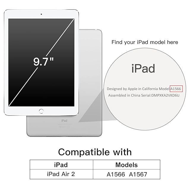 iPad Air2 ケースのために専門設計。ご購入の前、iPadの機種をご確認お願いいたします。ご購入の前、おデバイスの裏面にあるモデル番号をご確認ください。(それだけ対応モデル:A1566/A1567)ご注意ください:他のiPadモデルには適合しません