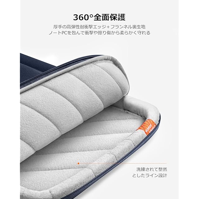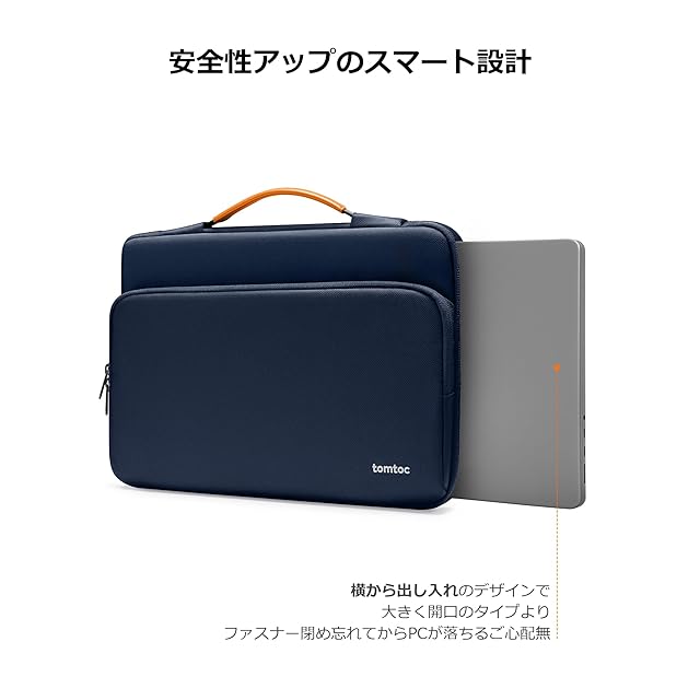 【軍用規格の360°全面保護】このパソコンバッグは四角にある特許取得のゴム「CornerArmor」クッション、PC四辺をフル周る厚手の高弾性エッジやふわふわとした裏生地の組合せが、超強耐衝撃力でパソコンを衝撃や意外の落下から守り、アメリカ軍用落下規格(規格MIL-STD-810H:2019)をクリア。