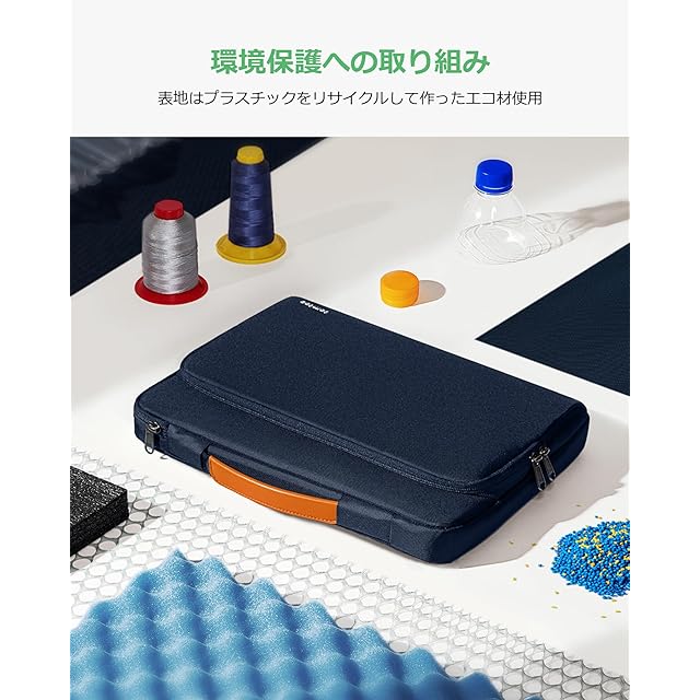 【品質や機能の両立】バッグの寿命が基本的にファスナーや生地で決められます。tomtocケースは耐久性に優れたYKKファスナーを採用し、開閉もよりスムーズで、長持ちです。それに加え、耐摩耗性に優れて手触りの良いPUレザー取っ手、ベットボルトを再生利用した耐久性や撥水性を備えたエコ材表地、柔らかいフランネルの裏地は予想以上の品質を実現。tomtoc製品は全て12ヶ月間安心付きます。