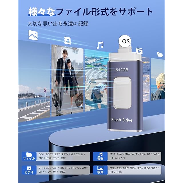 【簡単データ管理・容量不足解消】 iphone用外付けメモリシンプルで使いやすいデザインと、初心者でも簡単に操作できます。プラグアンドプレイの機能で、手間がかからず、スムーズなデータ移行が可能です。写真、ビデオ、音楽、ドキュメントなどのファイルを効率的に整理し、管理することができます。データの整理とバックアップを一括で行い、ストレスを軽減しましょう。スマホ/タブレットに容量不足をすぐに解決できます。PCいらずでも空き容量を確保できます。