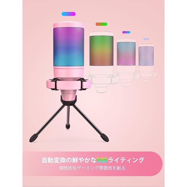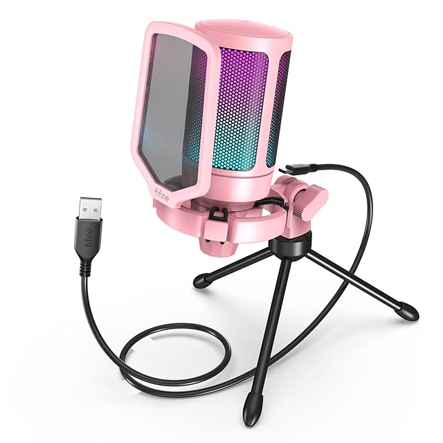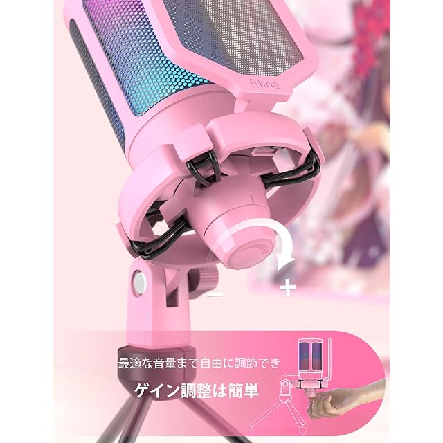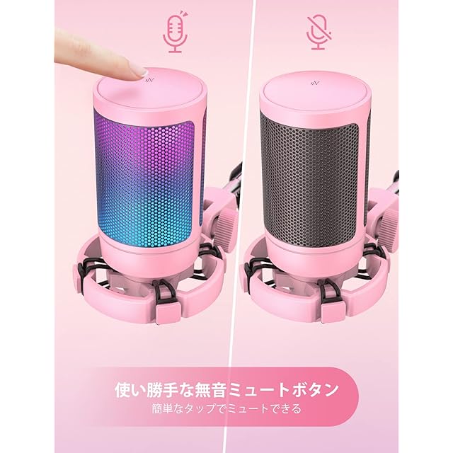 FIFINE USB コンデンサーマイク RGBライティング カーディオイド指向性 プラグ&プレイ パソコン/プレステマイク USB-C→Aケーブル付き ワンタッチミュート YouTube Skype Discord Zoom 録音 ゲーム実況 ボイズチャット ライブ配信 テレワーク web会議用 PCのWindows MacOS PS4/PS5対応 ピンク AmpliGame A6VP | つむぎ屋