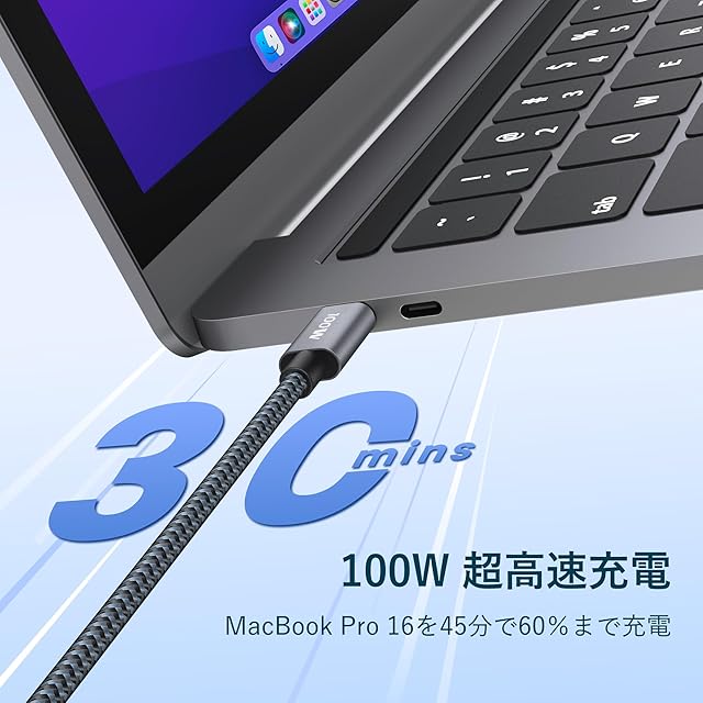 【最大240Wの超高速充電対応】この USB C to USB C ケーブルは PD3.0 と QC3.0 の急速充電技術に対応し、最大 240W の出力を提供します。ゲーミングノートパソコンに最適で、出力が 200W/170W/140W/100W/65W/18W に対応し、お使いの全てのデバイスを素早く充電できます。35分でSwitchを90%、Samsung S23を88%、MacBook Proを80%、iPad Proを90%まで充電することが可能です。▲PD充電を実現するためには、デバイスとアダプターがPD機能をサポートしている必要があります。