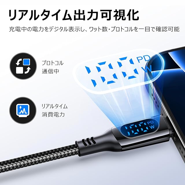 【リアルタイム電力可視化】リアルタイムのワット数表示で充電有無を視覚的に把握できるだけでなく、出力W数を常時監視することで高速充電の作動状態を一目で確認可能。プロトコル表示機能を備えており、PDやQCなどの対応状況が瞬時に判別でき、機器の互換性を確実に見極められる設計。