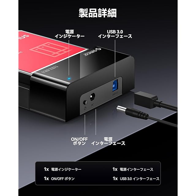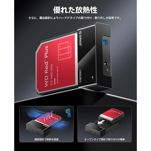ORICO 3.5インチ HDDケース 取り替え簡単 USB3.0接続 16TB対応 高放熱 ハードディスクケース 2.5インチ/3.5インチ 両対応 開放式設計 HDDドック 工具不要 SATA3.0 ドライブケース SSDケース 電源アダプター付 グラック 6518US3-BK | つむぎ屋