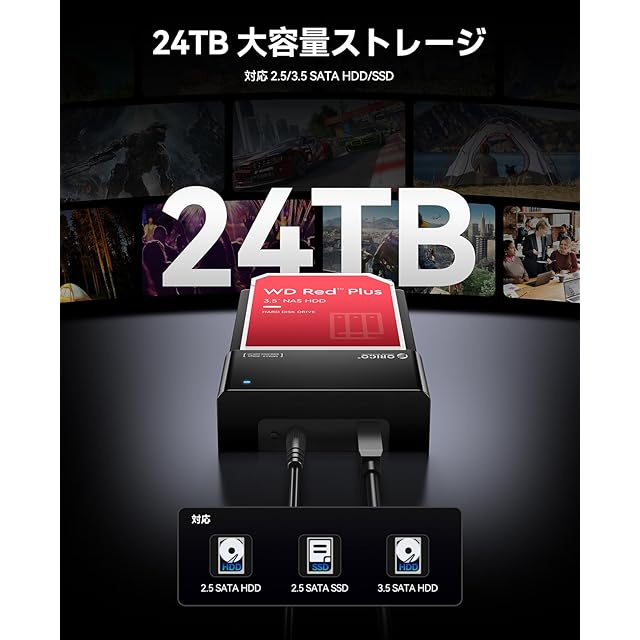 【2.5/3.5両対応】2.5インチと3.5インチのハードディスクをどちらも対応します。最大は16TBのHDDサポート、全て厚みのSATAディスクと互換性があります。