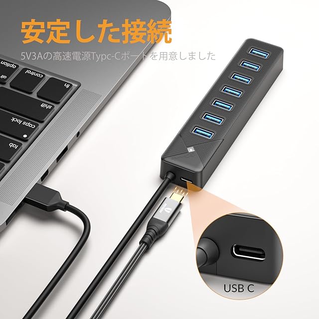 【安定した5V/3A電力供給】5V/3AのUSB-Cポートを追加し、電源アダプターを接続し、大電力USBデバイスを使用する場合に安定した伝送ができるようにします。ご注意:この製品には電源アダプターは含まれていません。