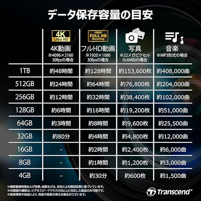 【】: 5年 / 記録データの消失に関するはございませんので予めご了承ください。規定に関してはトランセンドホームページをご参照ください。商品の仕様・外観は製造時期 / のタイミングにより画像と異なる場合がございます。