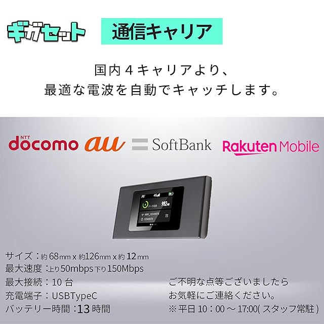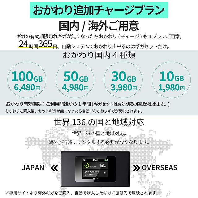 【ギガセット】チャージ型 ポケットWiFi 100GB365日付 契約不要 月額費用無し 24時間 ギガ リチャージ WiFiルーター クルマ利用 海外利用も可 電源付けるだけですぐ利用可能 | つむぎ屋