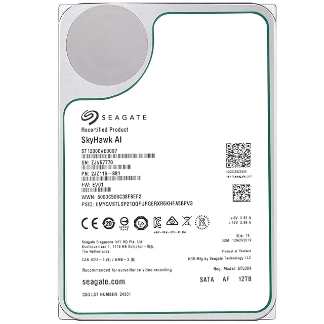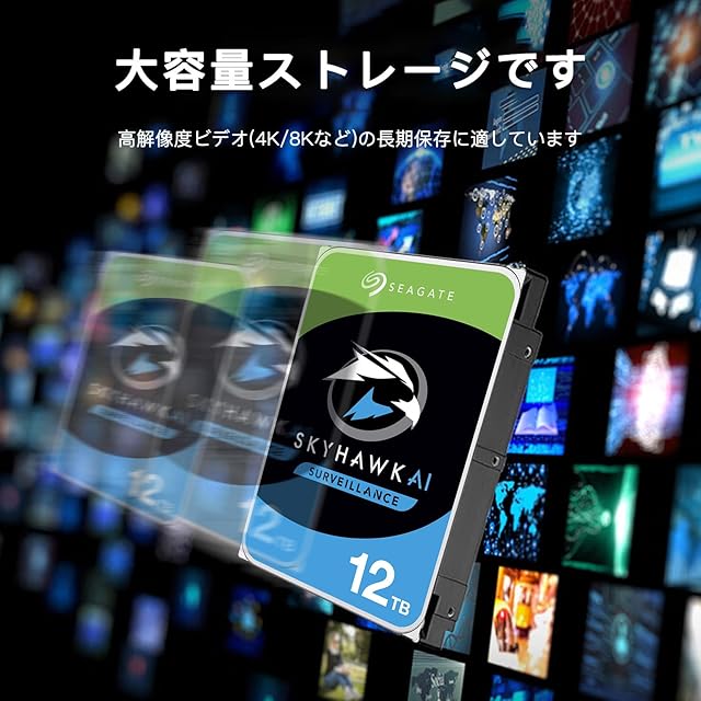 商品名:【整備済み品】 シーゲイト SkyHawk AI 12TB hdd内蔵,3.5インチ 監視用ハードディスク 2年,7200rpm SATA 6Gb/s 256MB 24時間稼動 NAS ネットワーク 監視カメラ ビデオレコーダ