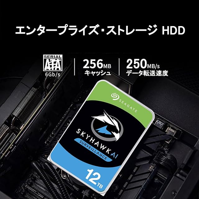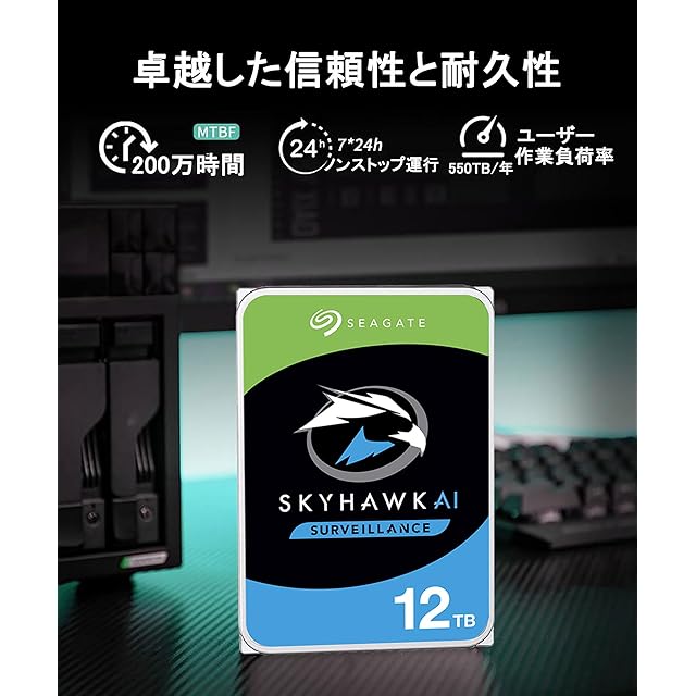 【整備済み品】 シーゲイト SkyHawk AI 12TB hdd内蔵,3.5インチ 監視用ハードディスク 2年,7200rpm SATA 6Gb/s 256MB 24時間稼動 NAS ネットワーク 監視カメラ ビデオレコーダ