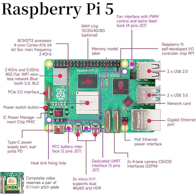 【ラズベリーパイ5仕様】新しい世代のラズベリーパイ5は、パフォーマンスが大幅に向上しています。CPU: Broadcom BCM2712 ARM Cortex A76 (クアッドコア @ 2.4GHz);GPU: VideoCore VII @ 800Mhz;4K HEVCデコーダー搭載;RAM: 8GB;ポート: 2×マイクロHDOUT ;2×USB 3.0 ;2×USB 2.0;メモリーカード;ギガビットイーサネット;USB-C (電源);Wi-FiBluetooth 5.0PCI-E 2.0インターフェイス;ラズベリーパイ5が新しくアップグレードされ、市場に衝撃を与えています!