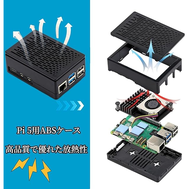 【ABS黒色ケース】Pi 5用に特別に設計されたケースは高品質のABS素材製で、放熱性能が優れており、メモリーカードの挿入と取り外し、GPIO ケーブルを接続でき、Pi5 電源インジケーターの動作状態を簡単に確認できます。外部からの衝撃や損傷からRaspberry Piを強力に保護します。