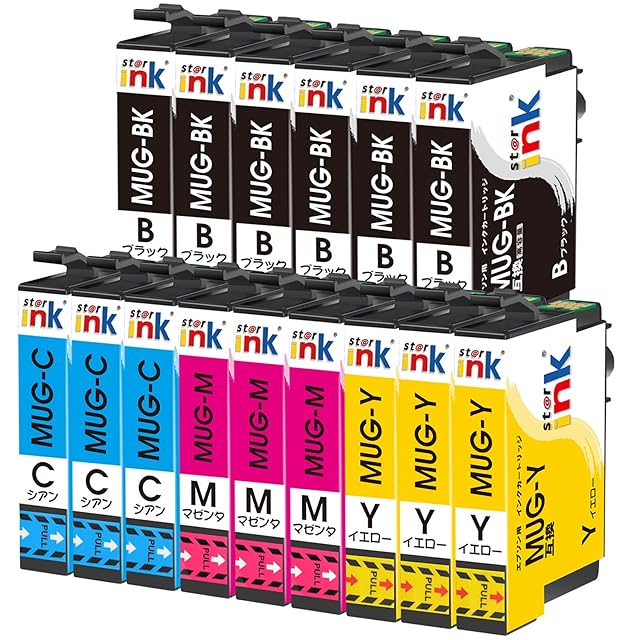商品名:エプソン 対応 MUG-4CL マグカップ Epson 互換インク 15本セット (6BK/3C/3M/3Y) MUG 互換インクカートリッジ EW-052A EW-452A 大容量 残量表示機能 個包装 starink製