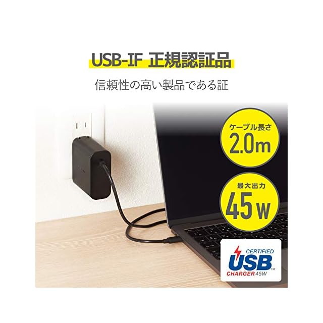 商品名:エレコム ノートPC用ACアダプター Type-C PD対応 45W ケーブル一体型 2m ブラック ACDC-PD0145BK