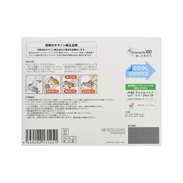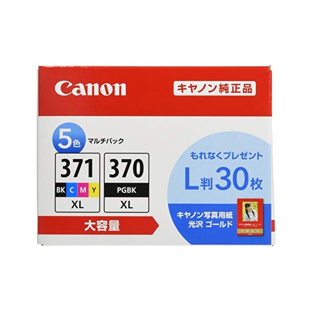 キヤノン Canon 純正 インクカートリッジ BCI-371XL(BK/C/M/Y)+370XL 5色マルチパック 大容量タイプ 【L判写真用紙30枚付】BCI-371XL+370XL/5MPV | つむぎ屋