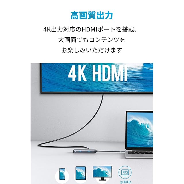 ★★<b>製品の仕様</b>★★<br>[パッケージ内容] Anker USB3.0 高速ハブ、USB3.0ケーブル、日本語取扱説明書<br>[データ転送速度] USB3.0:最大5Gbps/USB2.0:480Mbps/USB1.1:12Mbps ※実際の転送速度は、接続された環境により影響を受けます。<br>[ポート数] 4<br>[ケーブル長] 約30cm(一体型)<br>[サイズ] 10.3 x 3.6 x 2.4cm<br>[重さ] 約77g(本体のみ)<br>[対応OS] Windows XP / Vista / 7 / 8、Mountain Lion 10.8.2以降/Mac OS 9.1以降、Linux<br>[期間] 18ヶ月(日本語専用サポート窓口あり)<br><br>※※<b>ご注意</b>※※<br>・本製品のパフォーマンスを最大限に発揮するために、接続された機器の合計電流電圧はが5V 900mAを超えないようにして下さい。不安定になったり、接続が切断されたりする場合があります。<br>・このハブは、スタンドアローンの充電器としてはご使用頂けません。iPadや他の標準的な充電仕様以外の機器には、充電することが出来ません。<br>・2.4 GHzのワイヤレス機器(ワイヤレスキーボード、マウスアダプター)などは、USB3.0デバイスやハブに近いと動作しない場合があります。USB2.0ポートへの接続をお勧めします。<br>・一部のUSB3.0機器は、直接コンピュータのUSBポートへの接続が必要あります。