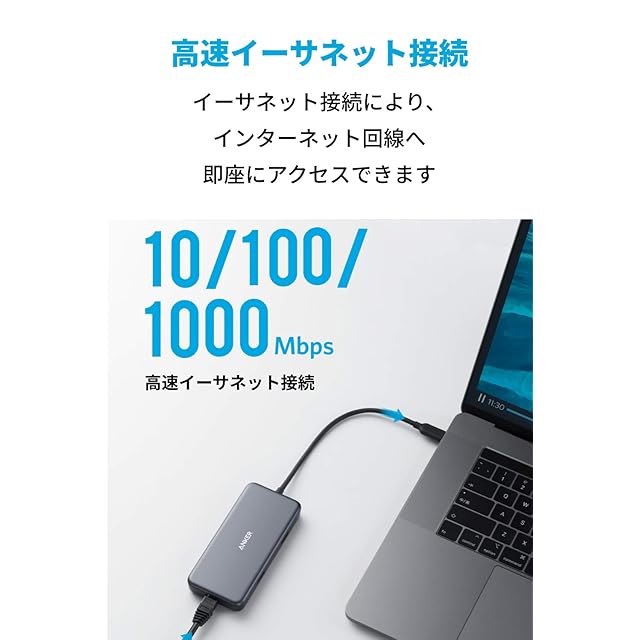 商品名:Anker PowerExpand+ 7-in-1 USB-C PD イーサネット ハブ 4K対応HDMI出力ポート 60W Power Delivery 対応USB-Cポート 1Gbps イーサネット USB-A ポート microSD&SDカード スロット搭載 MacBook Pro/iPad Pro/ChromeBook 他対応 テレワーク リモート 在宅勤務