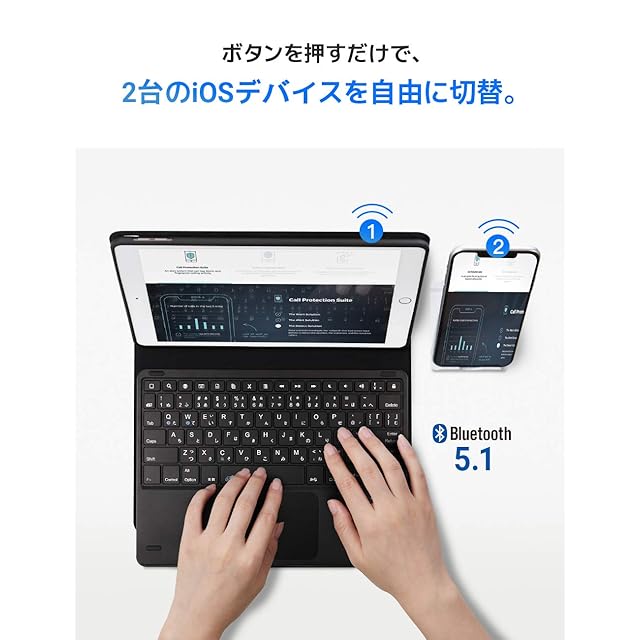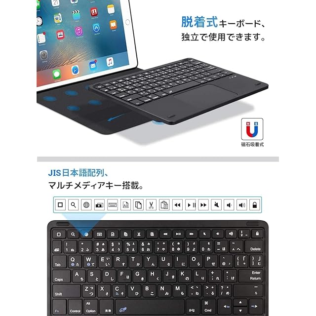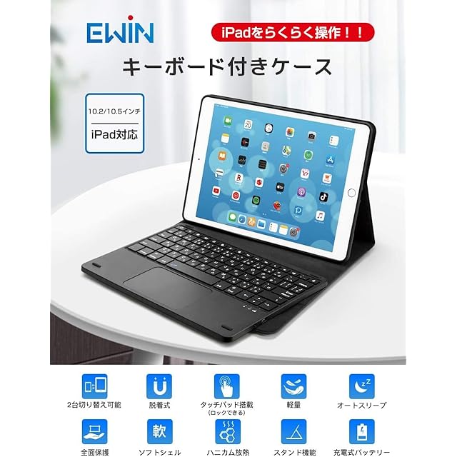 EWiN® 最新型 iPad第9世代 iPad10.2/10.5インチキーボードケース JIS基準日本語配列 第8世代2020 bluetoothキーボード タッチパッド搭載 脱着式 2台のiOSデバイス切り替え可能 ipad air3 ipad pro ブラック | つむぎ屋