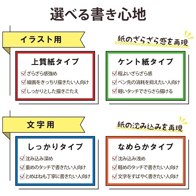 特殊表面形状デザインにより、ケント紙に鉛筆で描いたときの触感を実現します。
