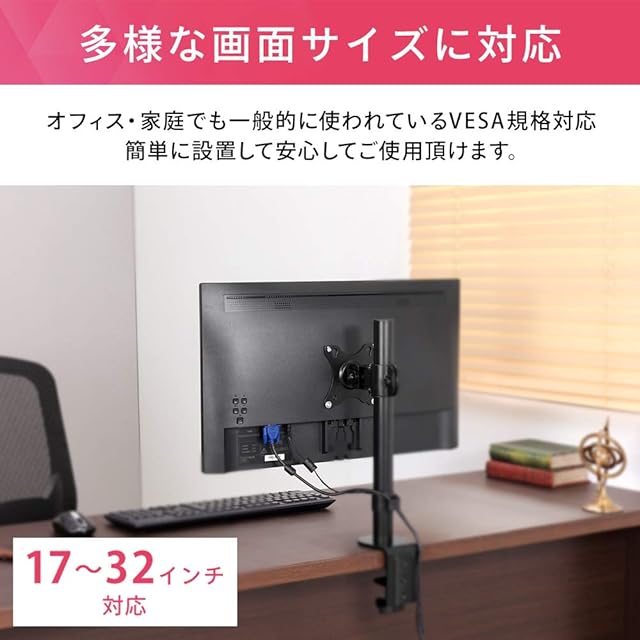 取り付け可能なディスプレイ:・vesaマウントインターフェイス:75×75mm、100×100mm ・最大重量:8kg ※種類によっては取り付けられないものがありますので、必ずご確認ください。