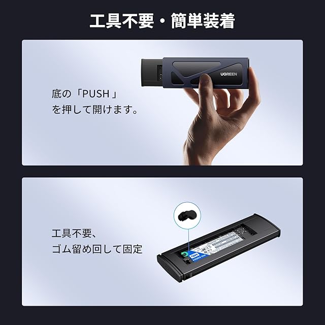UGREEN M.2 SSD 外付けケース NVME専用 M.2 SSD ケース 【USB3.2 Gen2接続規格】 UASP対応 10Gbps高速転送 アルミ ssd m.2 ケース 2230 2242 2260 2280(M-Key M&B Key) SSD対応 シリコンラバー付き 工具不要 USB C-C/USB A-C ケーブル付き ブラック | つむぎ屋