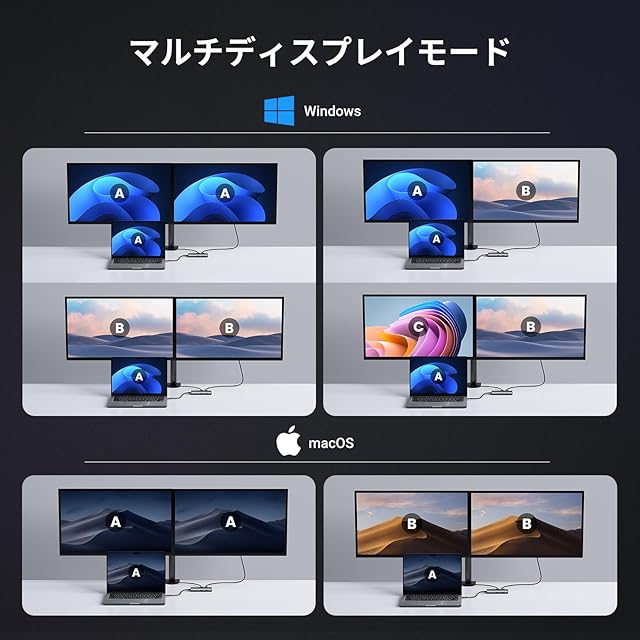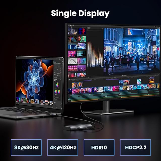【8K/30Hz&4K60Hz出力】USB C デュアル HDMI アダプターの HDMI 2 ポートは、最大 8K@30Hz の解像度を提供し、驚くほどのディテールと超鮮やかな色を生み出します。 ビジュアル コンテンツを作成したり楽しんだりすることがこれまでになく便利になりました。【ご注意:USB Cポートはビデオ出力に対応しておらず、HDMIポート2つだけでビデオを出力することができます。】