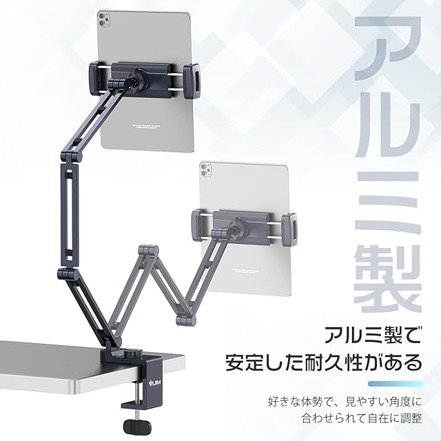商品名:Ulanzi LS31 タブレットスタンド タブレット アーム iPad用 スマホ 1/4 3/8ネジ付き 折り畳み式 両用 横/縱き 寝ながら 卓上 度調整できる アルミ製クランプ式 5関節 360度回転 高さ調節 4.7~13インチ対応 iPhone17に対応/iPad mini/Surface/Kindle/Switchに対応