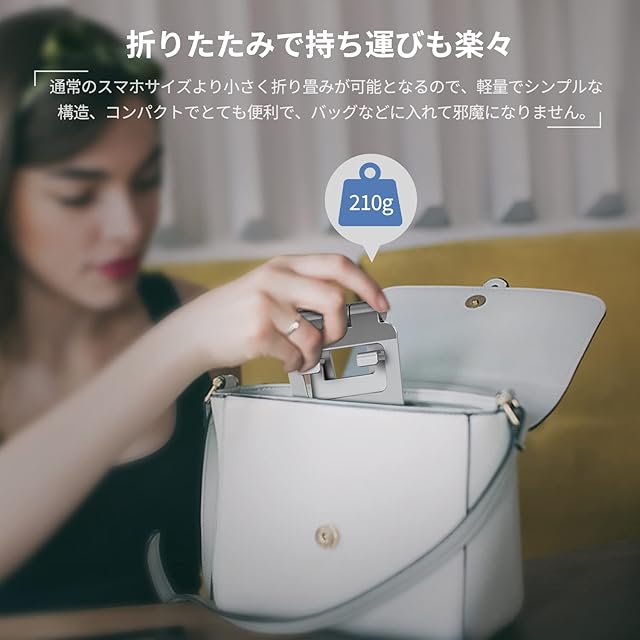 【折りたたみ・コンパクトで持ち運びも楽々】こちらのipadスタンドは、通常のスマホサイズより小さく折り畳みが可能となるので、折りたたみサイズが142*92*30mmで、軽量でシンプルな構造、コンパクトでとても便利で、バッグなどに入れて邪魔になりません。また、ホルダーの重量約209gとなるので、出張や旅行なのに気軽に持ち運びやすいです。