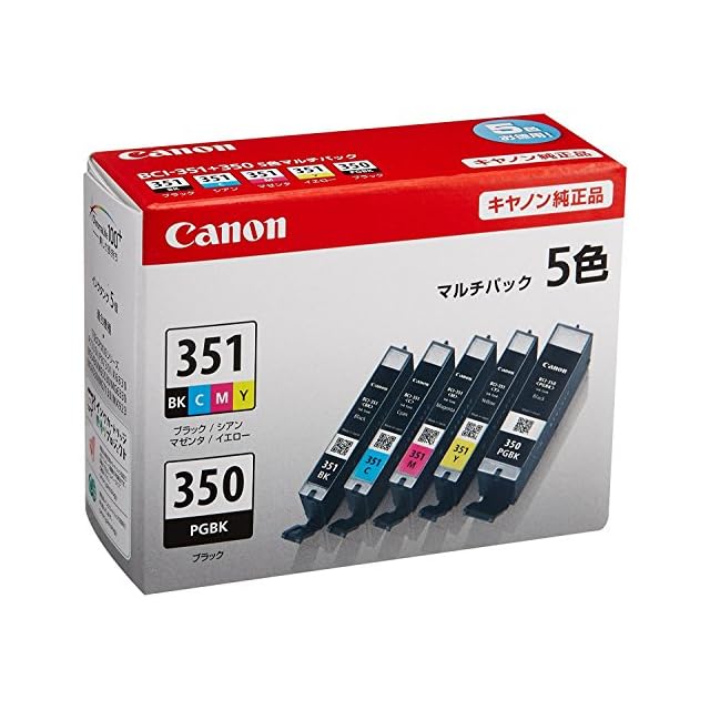 キヤノン 純正品 インクカートリッジ BCI-351XL+350XL/5MP BCI-351XLの4色(BK/Y/M/C)とBCI350XLPGBKをセットにしたお得用5色マルチパック。 | つむぎ屋