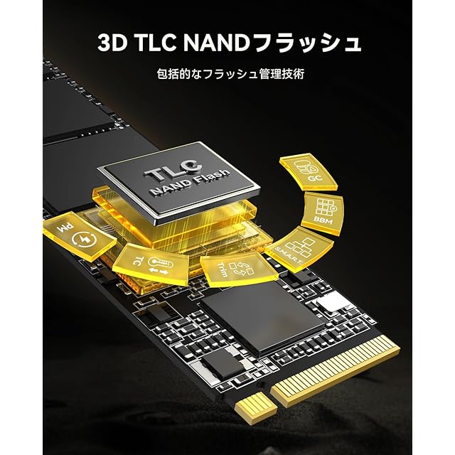 高耐久3D TLC NANDでデータを長期間保護 - 信頼性の高い3D TLC NANDフラッシュメモリを採用し、データの読み書き効率と寿命を向上。従来のQLC SSDに比べて耐久性が高く、頻繁なデータ書き換えにも安定動作。重要なファイルやゲームデータを安全に保管できます。
