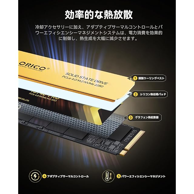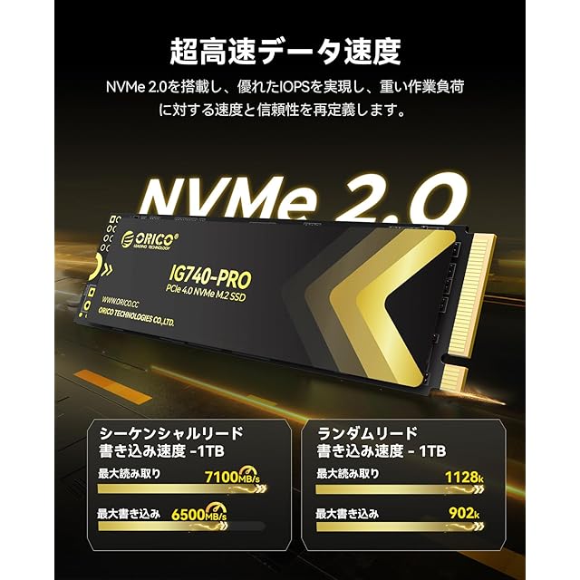 ORICO IG740PRO 1TB 産業用内蔵SSD - PCIe 4.0 M.2 NVMe 2280 読取速度 7100MB/s 書込速度 6500MB/s 高耐久 3D TLC NAND搭載 600TBW エッジコンピューティング・産業用PC・PS5対応 5年メーカー | つむぎ屋