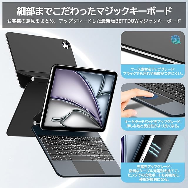 Bettdow 【新型自動チャージ】 マジックキーボード 2024 iPad Pro (M4) 11インチ 対応スマートキーボード 単独充電不要 iPad Pro 11 (M4) 11inch専用 トラックパッド付きキーボード ケース 高感度磁気吸着ケース JIS配列キーボード 日本語説明書 ブラック | つむぎ屋