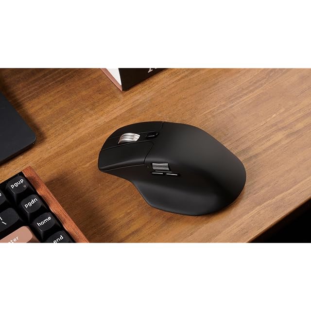 【国内正規品】Keychron M6 ワイヤレスマウス、2.4 GHz/Bluetooth 5.1/有線マウス、PixArt 3395センサー、プログラム可能なボタン搭載、サイドスクロールボタン搭載、最大26,000 DPI/650IPS, 78g軽量、人間工学デザイン for Windows Mac Linux (1000 Hz, ブラック(メタルホイール))