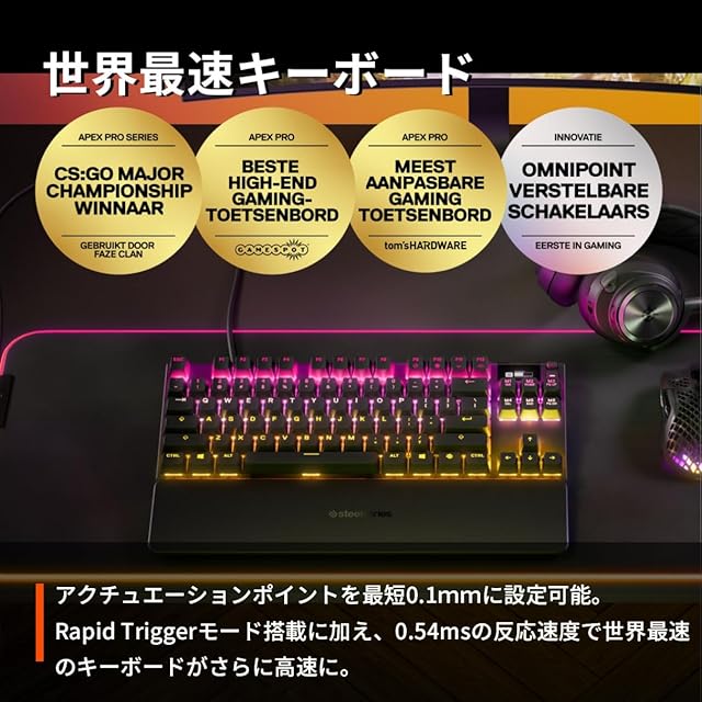 SteelSeries ラピッドトリガー 搭載 ゲーミングキーボード テンキーレス 有線 英語配列 OmniPointスイッチ 有機ELディスプレイ搭載 Apex Pro TKL US 64734 ブラック