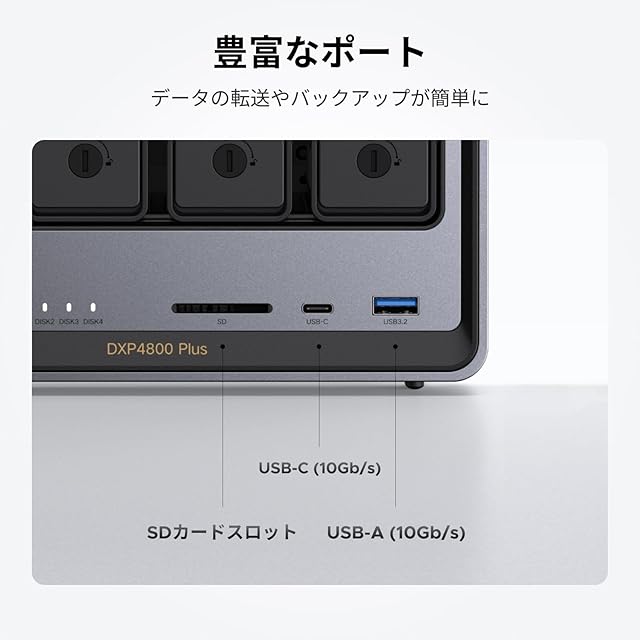 超高速転送:10GbEネットワークポートまたは10Gbps USBポートを使用して、1GBファイルを1秒以内に転送できます。