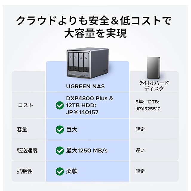 幅広い互換性:UGREEN NASyncは、Western Digital、Seagate、Toshibaなどのサードパーティ製ハードドライブと互換性があります。詳細は互換性リストをご確認ください。注:ストレージハードドライブは付属していません。