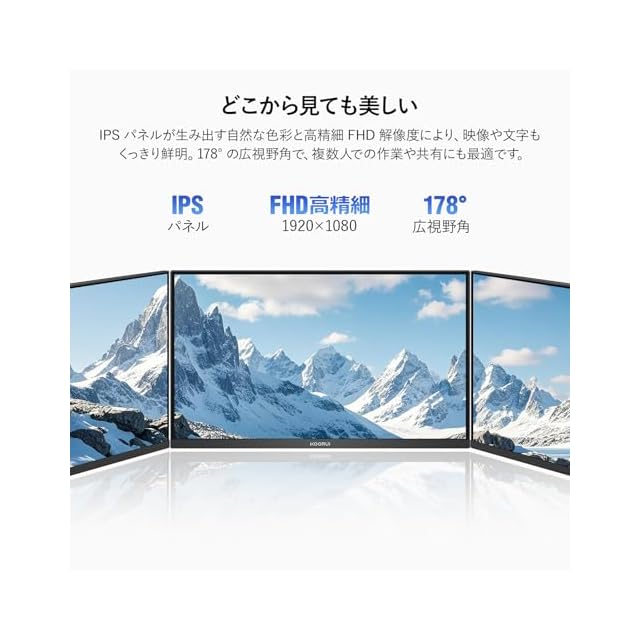 【Fast IPSパネル&広色域&驚くほどの映像美】178°広視野角の非光沢Fast IPSパネルを採用、どうな角度から見ても画像が鮮やかで自然に映し出します。DCI-P3 95%、sRGB 99%の広色域と 1.07B (8Bit+FRC) 以上の表示色で、忠実な色を再現でき、350nitの高輝度とHDR400機能加えて、明暗やディテールをすっきり映し出して、リアルで豊かな世界を没入します。