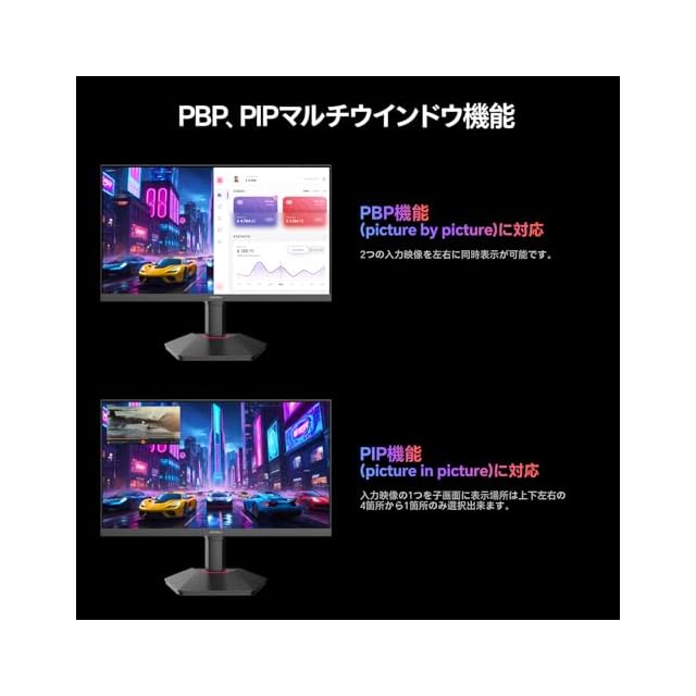 【生産性向上の画面分割機能】PBPとPIP機能を搭載し、1つのモニターに複数のタスクを同時に表示でき、左右分割画面とPIP表示をサポートします。 仕事、映画鑑賞、音楽鑑賞、ゲームなどを複数の画面で同時に行うことができ、作業効率が倍増します。