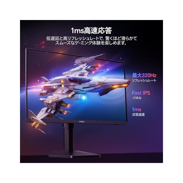KOORUI ゲーミングモニター 27インチ 4Kモニター デュアル解像度(4K@160Hz/FHD@320Hz) ディスプレイIPSパネル 縦横回転,高さ調整/HDR 400/ブルーライト軽減/VESA対応,G2741L | つむぎ屋