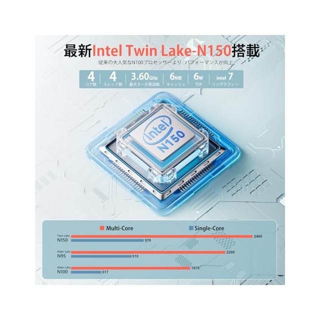 【最新第12世代インテルN150初登場・ミニpc windows11 Pro搭載】:省電力 ミニPCは最新の第12世代Intel Alder Lake-N150プロセッサー(最大周波数3.60GHz、4コア/4スレッド、6MBキャッシュ )を搭載し、消費電力はわずか6Wです。インテルのN95やN100 CPUに比べて約20%パフォーマンスが向上、非常にパワフルで、ホーム サーバー、学校教育、Webブラウジング、ビジネス、オフィス、ビルボードなど、より要求の厳しいニーズを満たすのは十分です。省エネ性と高速処理を両立した、働き方改革に最適なビジネス向けミニPC です。●本 mini pcは「Windows11Pro」がインストール済みですが、Ubuntu、Linux、Win11 Home、Win11 IOTもサポートします。