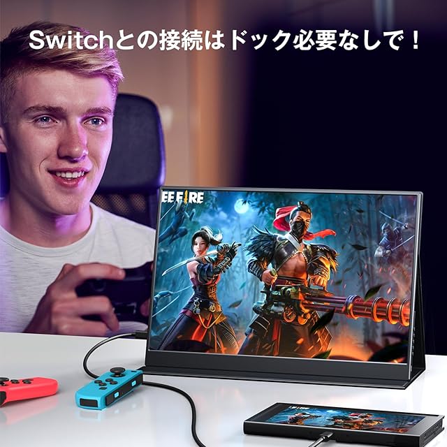【幅広い接続対応・ケーブル1本で簡単接続】二つの全機能Type-Cポートを搭載し、信号転送と給電に対応。Type-C端子を持たないデバイスにはHDMI接続も可能です。ノートパソコン、デスクトップ、スマホ、PS3/PS4、XBOX ONE、Wii、Nintendo Switchなどに対応し、標準でケーブルが付属しているため、追加購入の必要はありません。Type-Cケーブル1本で映像出力と給電を同時に行うためには、端末がDP ALT MODEに対応している必要があります。接続端末から給電する場合、電力不足になることがあるため、その場合は電源アダプターを使用してください。