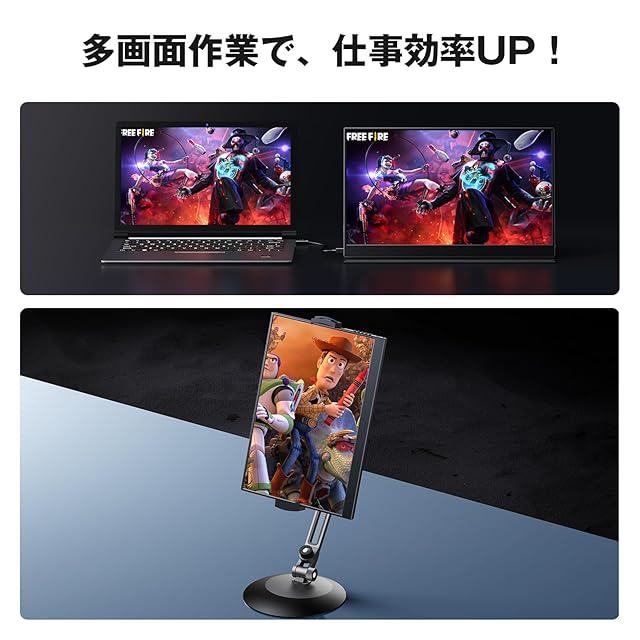 【マルチ場面で使えるサブモニター】ノートパソコン、デスクトップ、Raspberry Pi、スマホ、PS3/PS4、Xbox、Nintendo Switchなどに対応。サブモニターとして連続2画面を実現し、横置きや縦置きも自由に切り替え可能。60Hzリフレッシュレートで遅延なく、ゲーム用としても優秀です。仕事や趣味の場でも活躍し、プレゼントにも最適です。