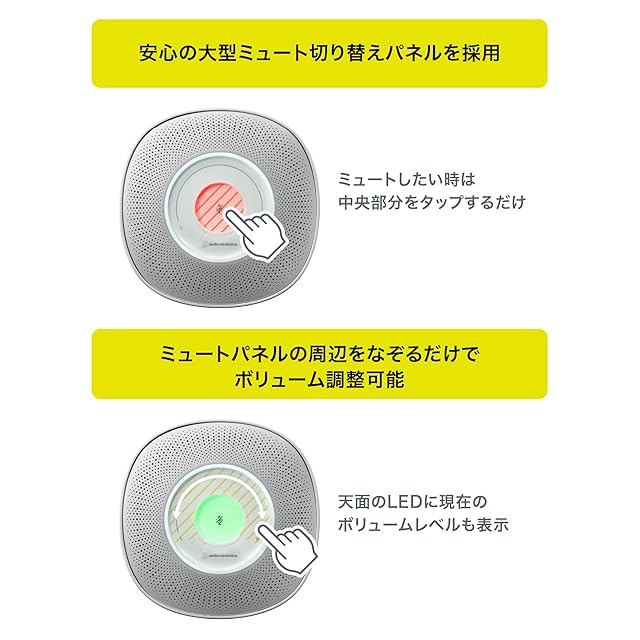 Zoom Certified を取得した信頼の性能:Zoom 社の認証を取得しているため、Web 会議ツール「Zoom」での操作と連動できます。ミュートパネルをタップするだけで、Zoom アプリのミュート操作が可能。発⾔した後に、PC上でカーソルを合わせてミュート、といった⼀連の動作ストレスから解放されます。