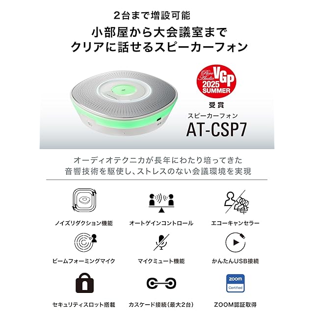 商品名:オーディオテクニカ AT-CSP7 (E) スピーカーフォン 会議用マイクスピーカー ZOOM認証 2台連結で最大12人対応 Type-C Type-A 対応 ノイズリダクション エコーキャンセラー オンライン会議 テレワーク 在宅 会議用システム