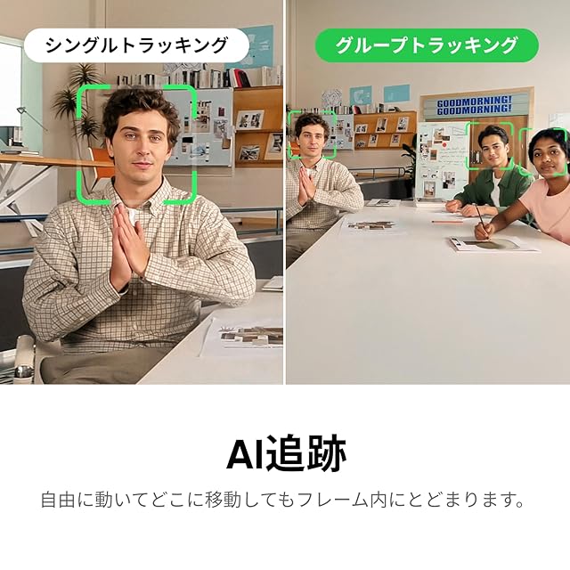 AI追跡: Link 2 は物理的にパンとチルトを行い、ユーザーの動きを追跡し、ユーザーやグループを完璧にフレームに収めます。