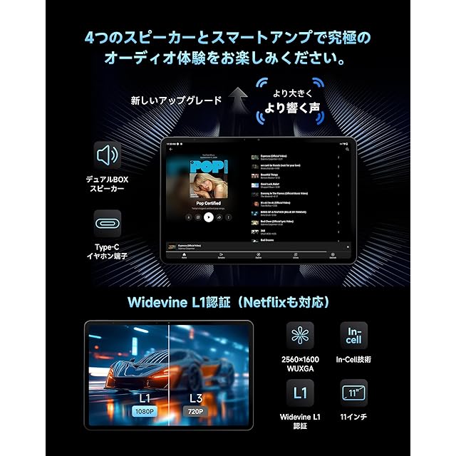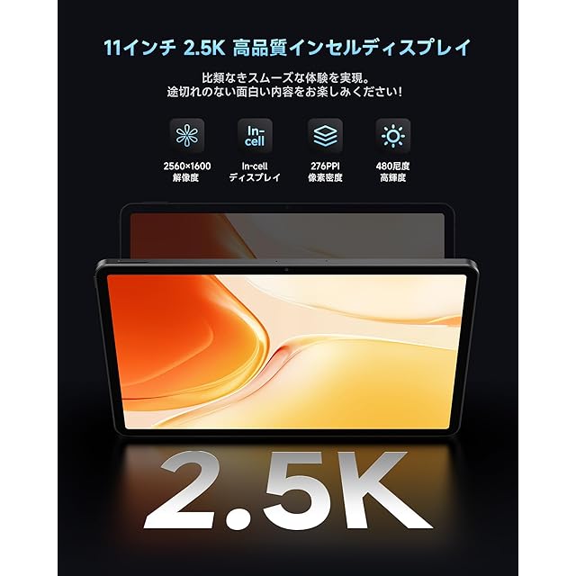 【2560×1600 高精細ディスプレイで圧倒的な映像美】 ALLDOCUBE iPlay70 Pro タブレットは、2560×1600解像度のIn-Cell フルラミネーションディスプレイ を採用し、驚くほど精細な映像を映し出します。高解像度と高コントラスト比により、写真や動画の細部までくっきりと鮮明。さらに、480ニトの高輝度に対応し、明るい屋外でも快適に視聴可能。11インチの大画面で、映画鑑賞や電子書籍もさらに没入感のある体験に! Widevine L1対応 によりNetflixのHDストリーミング再生も可能。まるで映画館のような映像体験を、どこでも楽しめます!